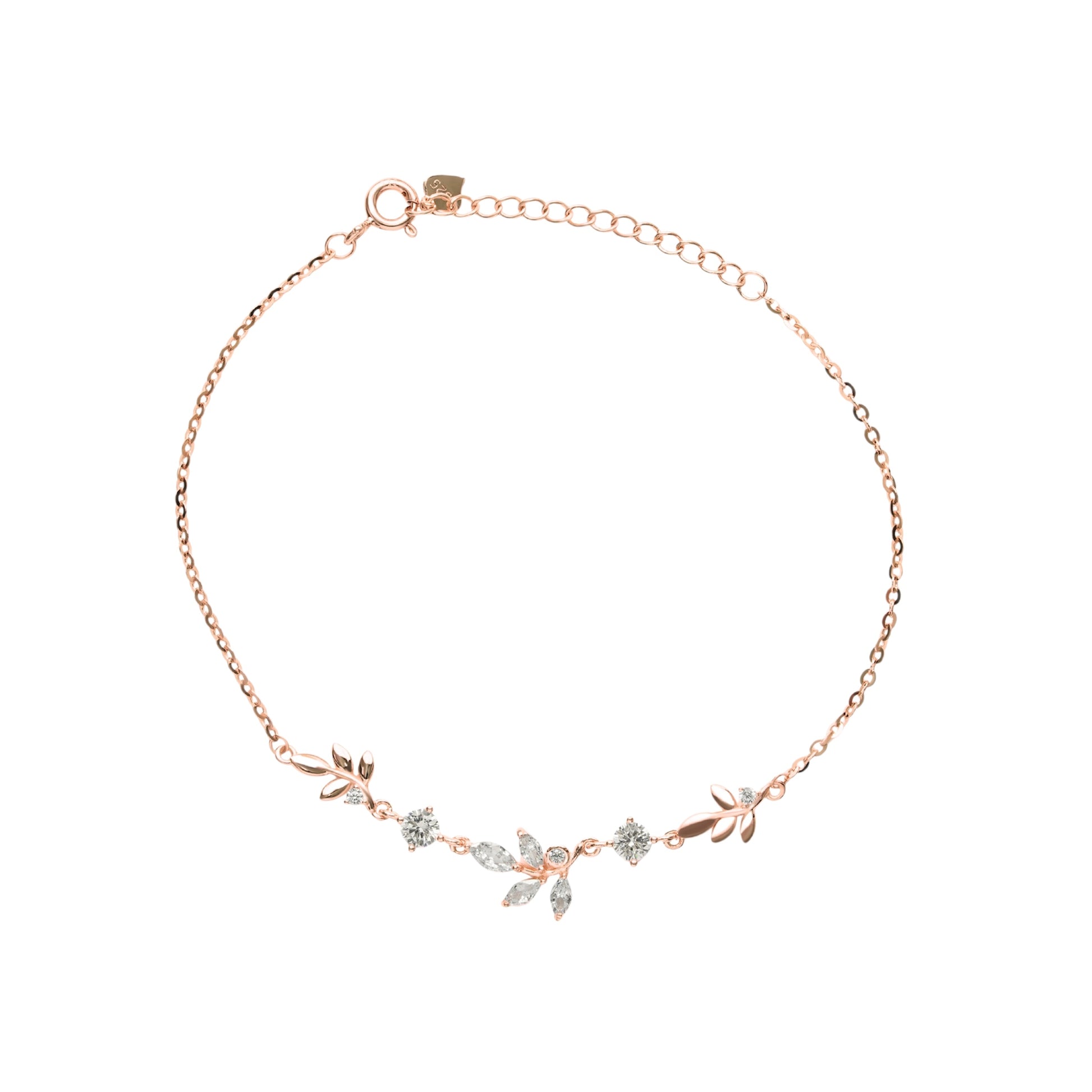 Like leaves drifting through moonlight, the Lirae Bracelet is a quiet ode to nature’s gentlest moments. Marquise-cut stones bloom between sculpted silver sprigs—each one a glimmer of softness, a pause between breath and breeze. Crafted with delicate precision, it captures the hush of twilight in full bloom.