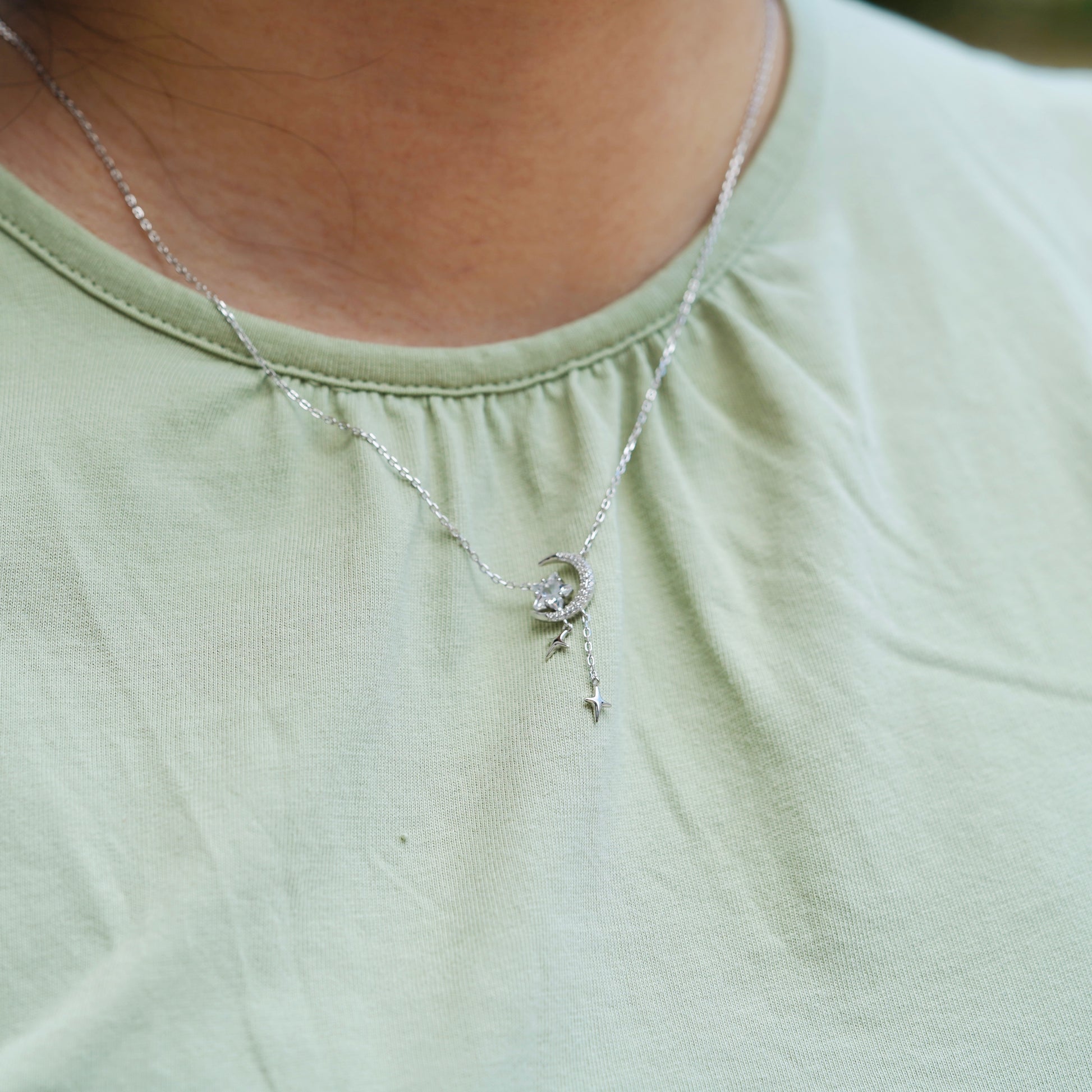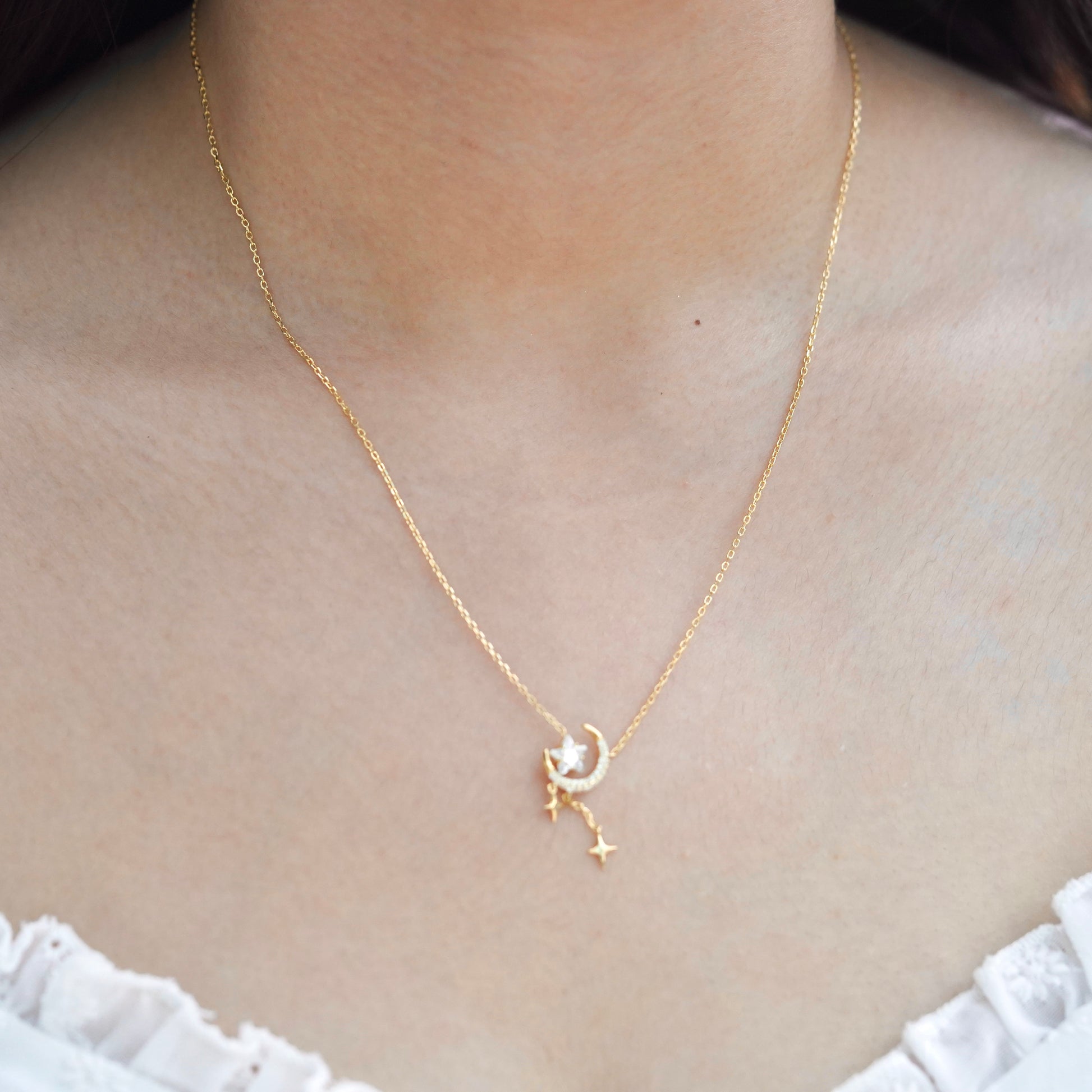 Lunafleur is a dreamy dance of crescent glow and starlit sparkle. A delicate star blossom rests against a golden moon, with two twinkling stars trailing below like whispered secrets. Crafted in gold vermeil and kissed with cosmic charm, this bracelet invites you to express your own constellation.