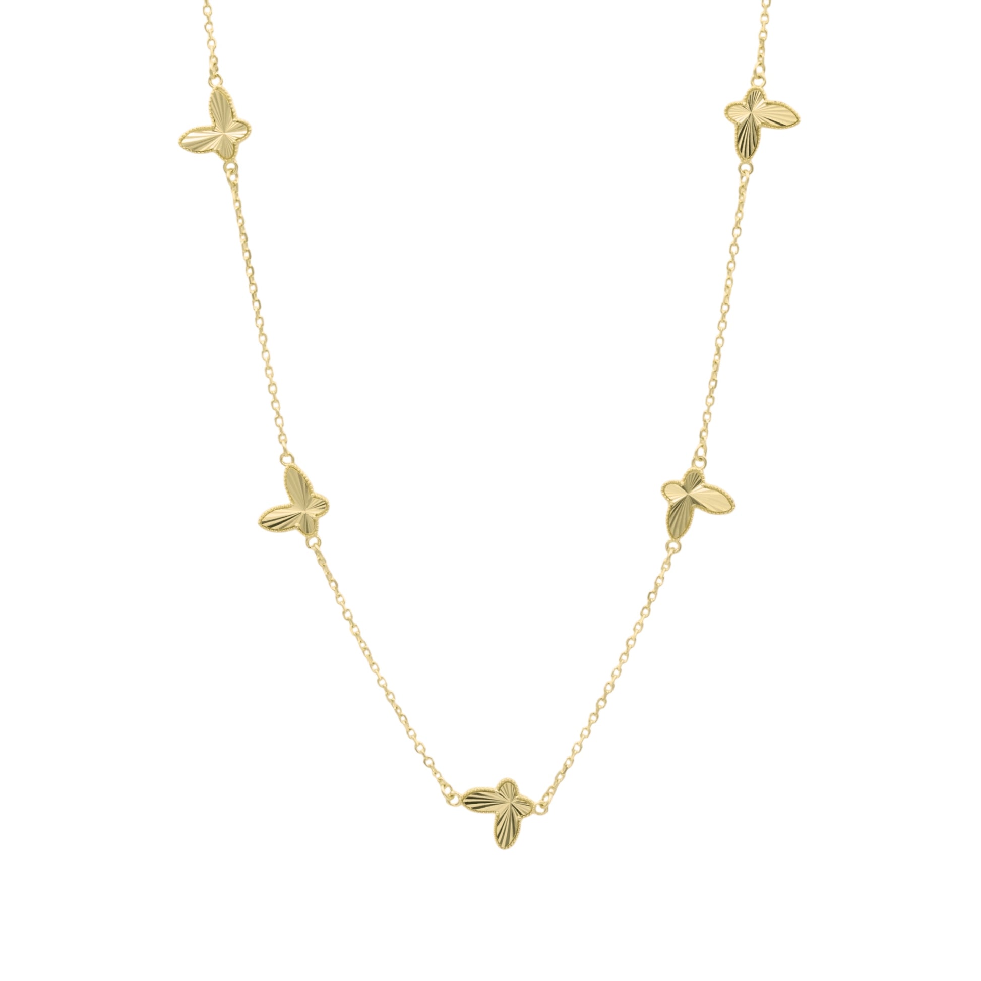 Like butterflies caught mid-dance, the Miraflora Butterfly Necklace is a garland of gentle flight and fleeting wonder. Each silver bloom flutters softly along the chain—delicate, joyful, and eternally in motion. A quiet ode to transformation, this necklace glimmers with the grace of a garden breeze, light as a sigh and bright as the promise of spring.