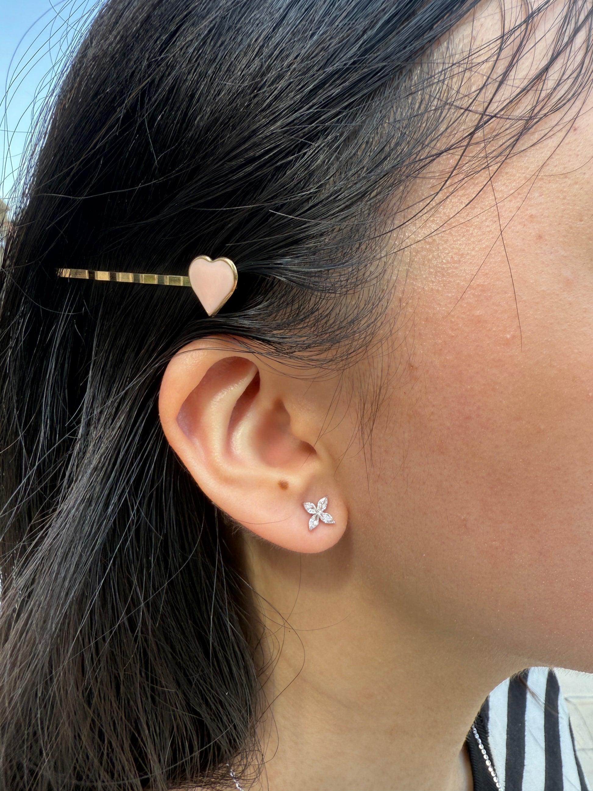 Like tiny constellations shaped into petals, the Nebuluxe Ear Studs are an ode to elegance spun from the sky. Each marquise-cut gem radiates like a point of light, forming a perfect starburst that feels both floral and celestial. Crafted in sterling silver, they shimmer with cosmic grace—delicate, luminous, and infinitely soft.